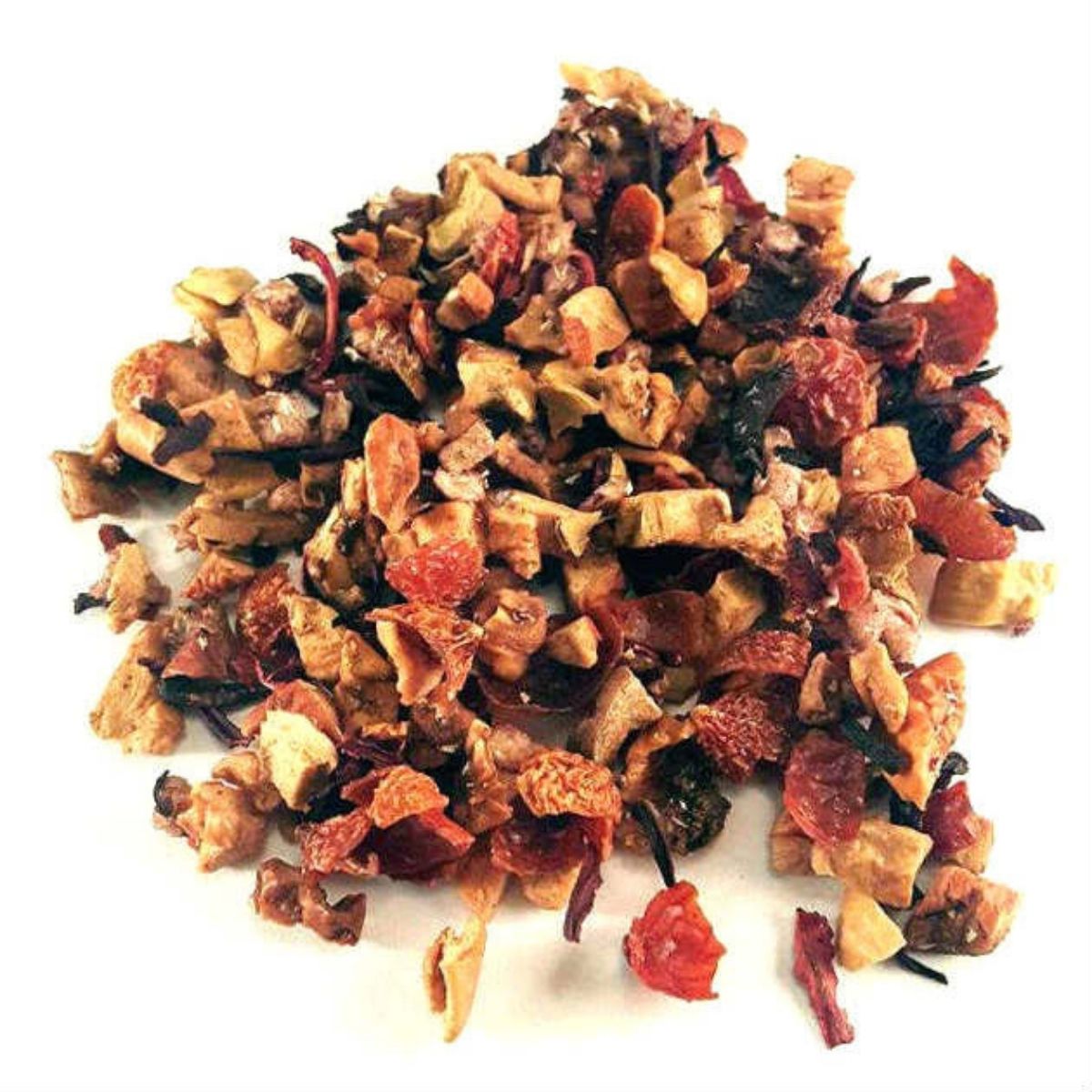 Ingrédients : Morceaux de pommes, églantier, hibiscus, pêches et pétales de camomille. (Ne contient aucun produit laitier).